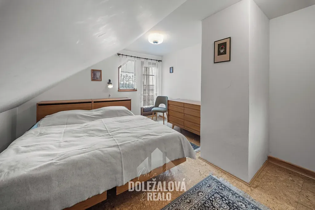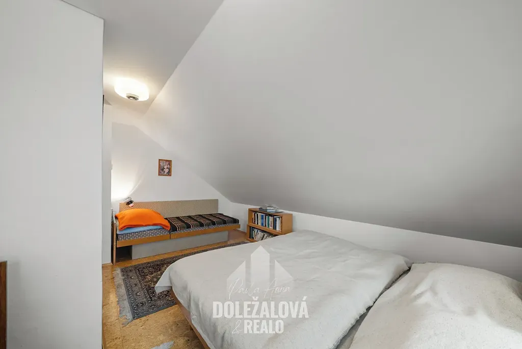 Po schodišti se dostanete do podkroví, kde jsou umístěny dvě samostatné ložnice, ideální pro rodinu či hosty.