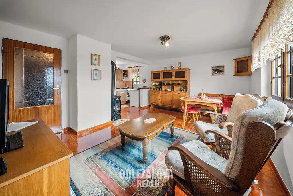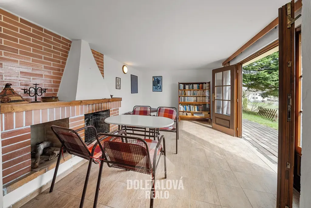 Dispozice chaty je řešena prakticky a zároveň vzdušně. V přízemí se nachází obytná část s kuchyňským koutem, která tvoří hlavní prostor pro každodenní fungování. Dále zde najdete krbovnu, která dodává interiéru jedinečnou atmosféru zejména v chladnějších dnech. Z obytné části je přístup na terasu a navazující zahradu, která poskytuje dostatek soukromí a prostoru pro relaxaci.