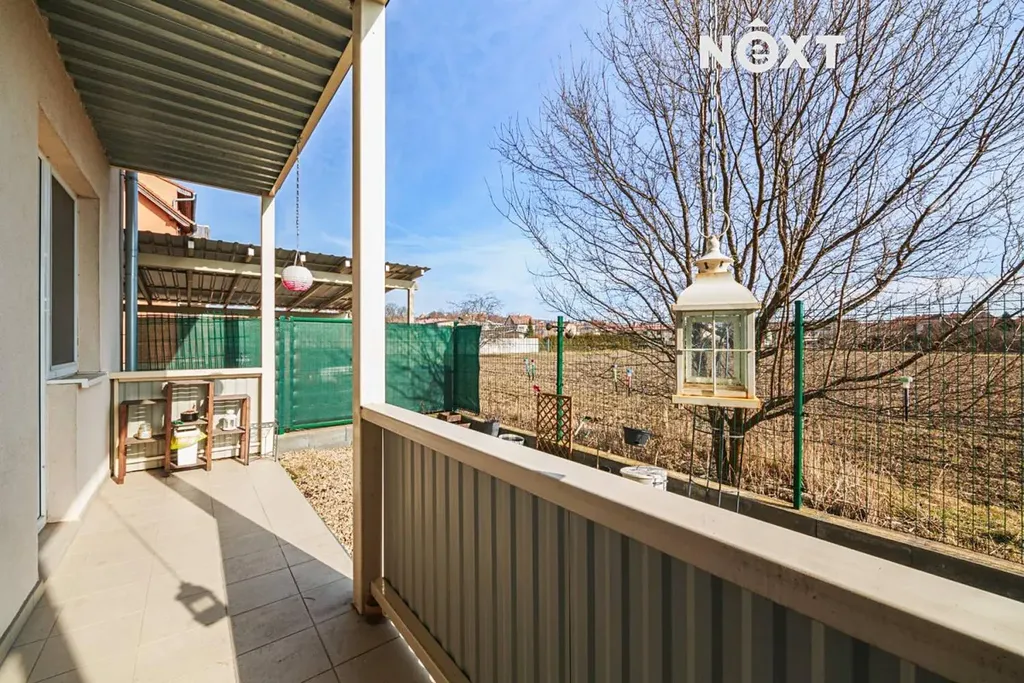 Z obývacího pokoje je vstup na prostornou terasu o velikosti 9,25 m², která navazuje na soukromou zahrádku 22m2 orientovanou na východ. Zahrádka poskytuje příjemný výhled do přírody a nabízí dostatek klidu, soukromí i prostoru pro relaxaci.