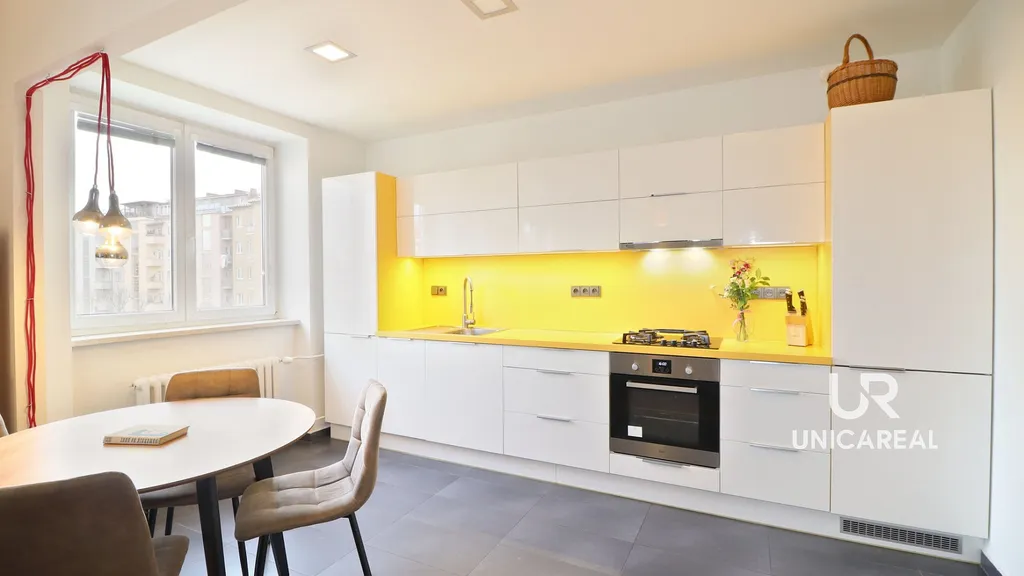 Dominantou bytu je otevřený obývací prostor propojený s kuchyňským koutem, který tvoří ideální místo pro každodenní život. Kuchyňská linka je plně vybavena vestavěnými spotřebiči ( myčka, lednice s mrazákem, trouba, plynová varná deska).
