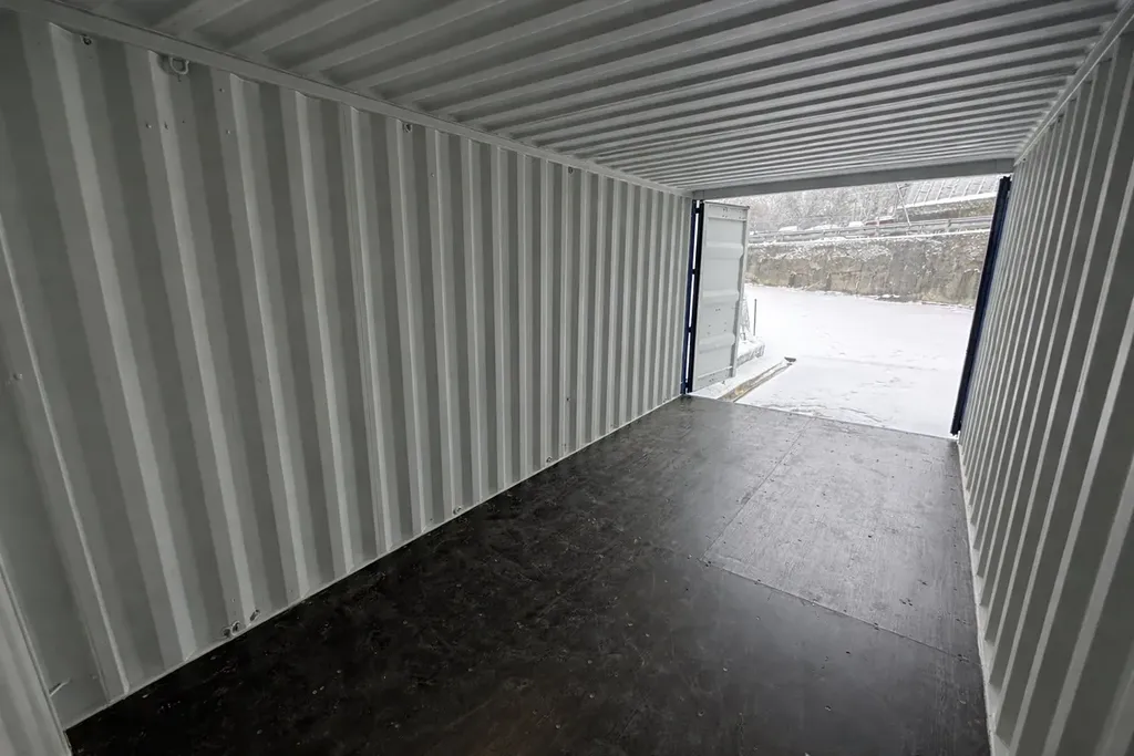Skladové kontejnery jsou čisté, bezpečné a ihned k dispozici. Uvnitř se nachází dřevěná podlaha.