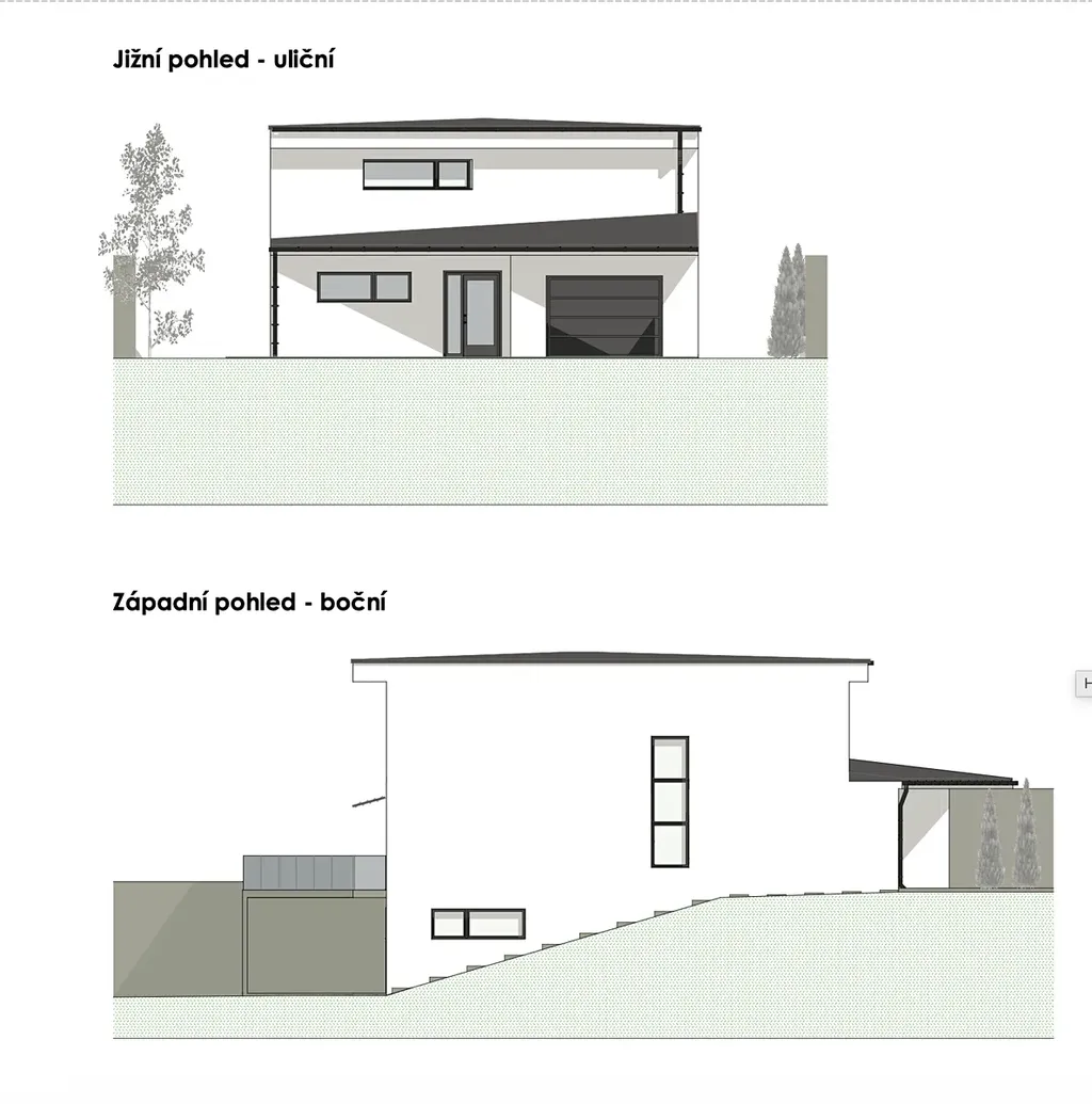 Součástí nabídky je také zpracovaná architektonická studie rodinného domu, která představuje možné řešení využití pozemku.