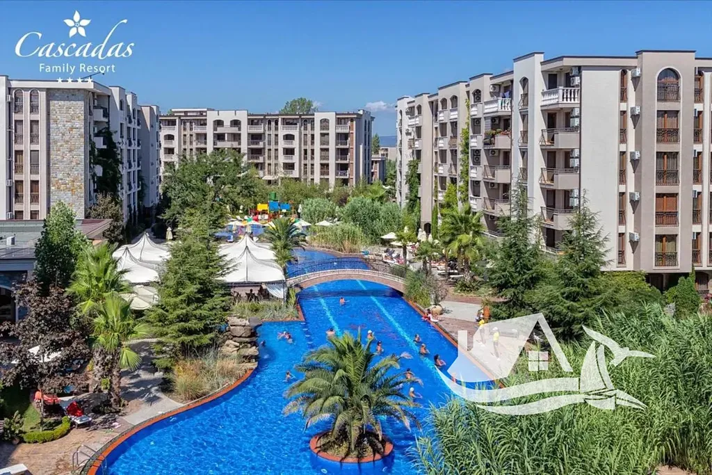 V komplexu Cascadas Family Resort na Slunečném pobřeží se nachází dvoupokojový apartmán, který spojuje pohodlí, styl a atmosféru letního života. Nachází se v pátém podlaží a nabízí příjemný výhled na bazén, který se stává každodenní kulisou vašeho pobytu.