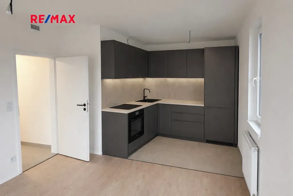 Byt bude částečně zařízen – budou doplněny lampy a skříň v předsíni. Kuchyň bude odpovídat vizualizaci na fotografiích a do doby nastěhování bude plně dokončena. Je vybavena všemi potřebnými spotřebiči: indukční varná deska, myčka nádobí, trouba a vestavěná lednice.