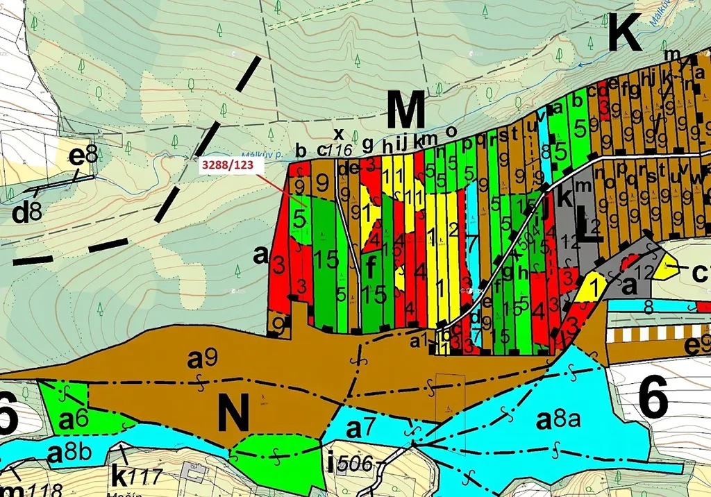 Lesní pozemek o výměře 1707 m2, parcelní číslo 3288/123, podíl 1/1, katastrální území Hosty, obec Hosty, obec s rozšířenou působností Týn nad Vltavou, okres České Budějovice, Jihočeský kraj. Částečně po těžbě.