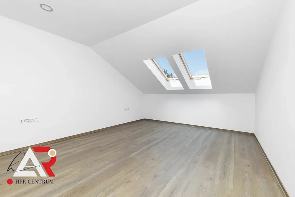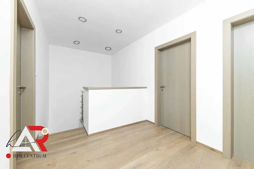V patře se nachází klidová zóna domu – tři prostorné ložnice a druhá koupelna vybavená vanou, toaletou, umyvadlem a místem pro pračku i sušičku, která poskytuje maximální komfort pro každodenní život.