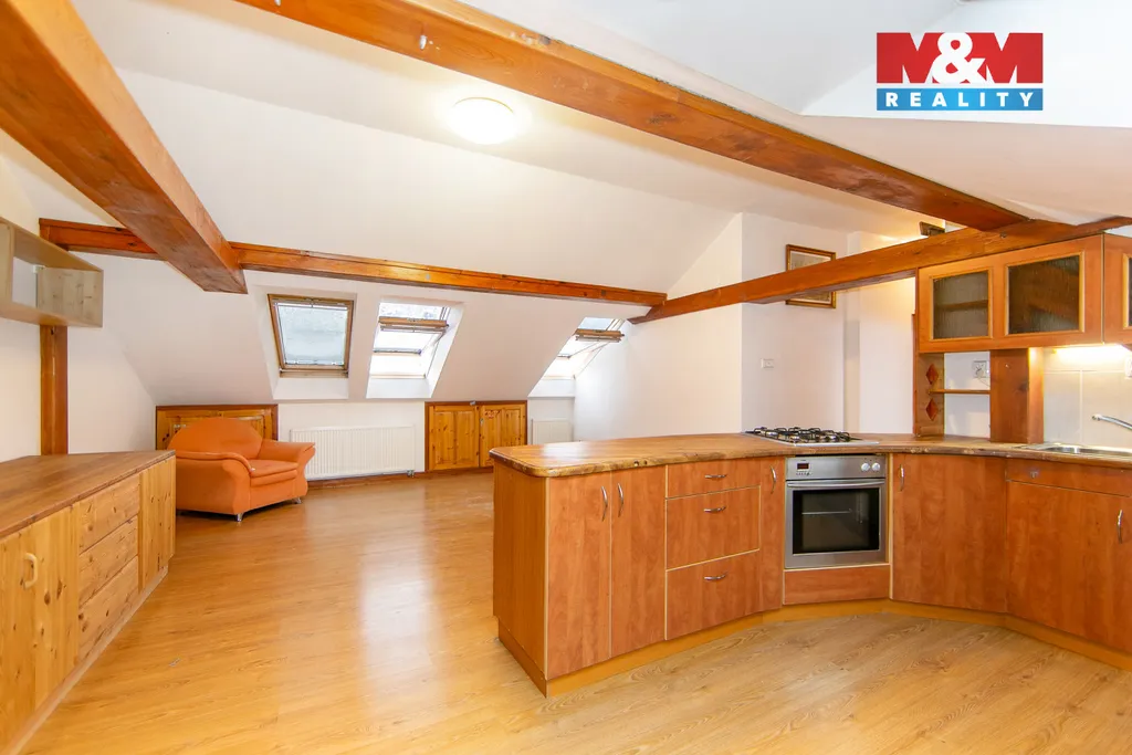 Hledáte bydlení v Hořovicích v klidné lokalitě a při tom v dobré dostupnosti centra města? Ve výhradním zastoupení nabízíme k prodeji prostorný podkrovní byt 2+kk o užitné ploše 70 m² v klidné části Hořovic v ulici Kosmonautů. Tento byt se nachází v půdní vestavbě třípodlažního cihlového domu, který disponuje také jedním podzemním podlažím. Byt je ve velmi dobrém stavu a nabízí ideální dispozici pro pohodlné bydlení ať už pro mladý pár, který hledá vlastní zázemí, nebo pro ty, kteří hledají příjemné bydlení v Hořovicích s dobrou dopravní dostupností Prahy i Plzně. Skládá se ze dvou místností, které jsou světlé a vzdušné, koupelny s WC a vstupní chodby. O pohodu v zimě se postará plynový kotel, který slouží zároveň jako zdroj TUV. Klidná lokalita zaručuje příjemné bydlení s veškerou občanskou vybaveností v blízkosti. Hořovice jsou známé svou výbornou dostupností do Prahy i Plzně, což z této nemovitosti činí atraktivní investici. Neváhejte a domluvte si prohlídku ještě dnes!