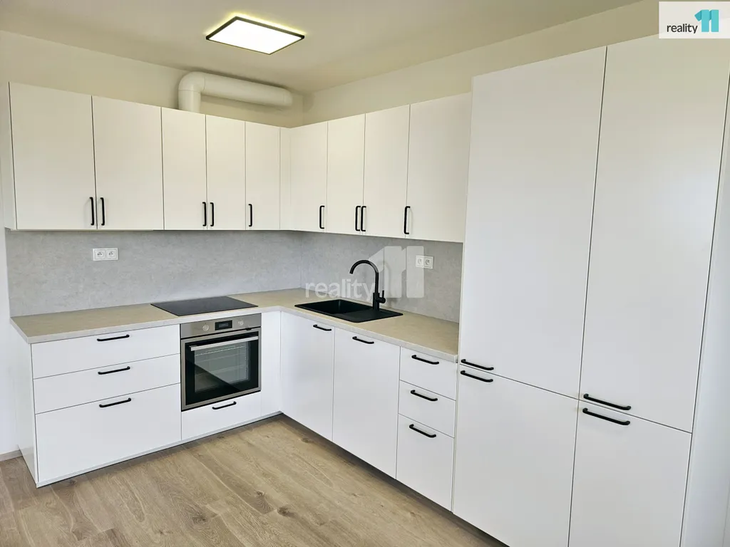 Byt je dispozičně velmi dobře řešen – světlý obývací pokoj s moderní kuchyňskou linkou a vestavěnými spotřebiči (trouba, varná deska, digestoř, myčka, lednice s mrazákem), ložnice orientovaná do klidné části domu, koupelna s vanou a toaletou. Byt je připraven od května 2026 nastěhování.