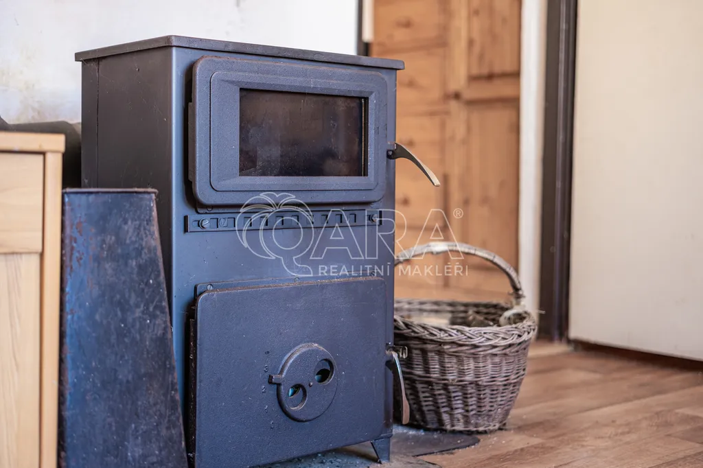 Elektřina je původní, nutná kompletní rekonstrukce. Ohřev vody – elektrickým bojlerem. Vytápění – elektrickými přímotopy a krbovými kamny v ložnici.