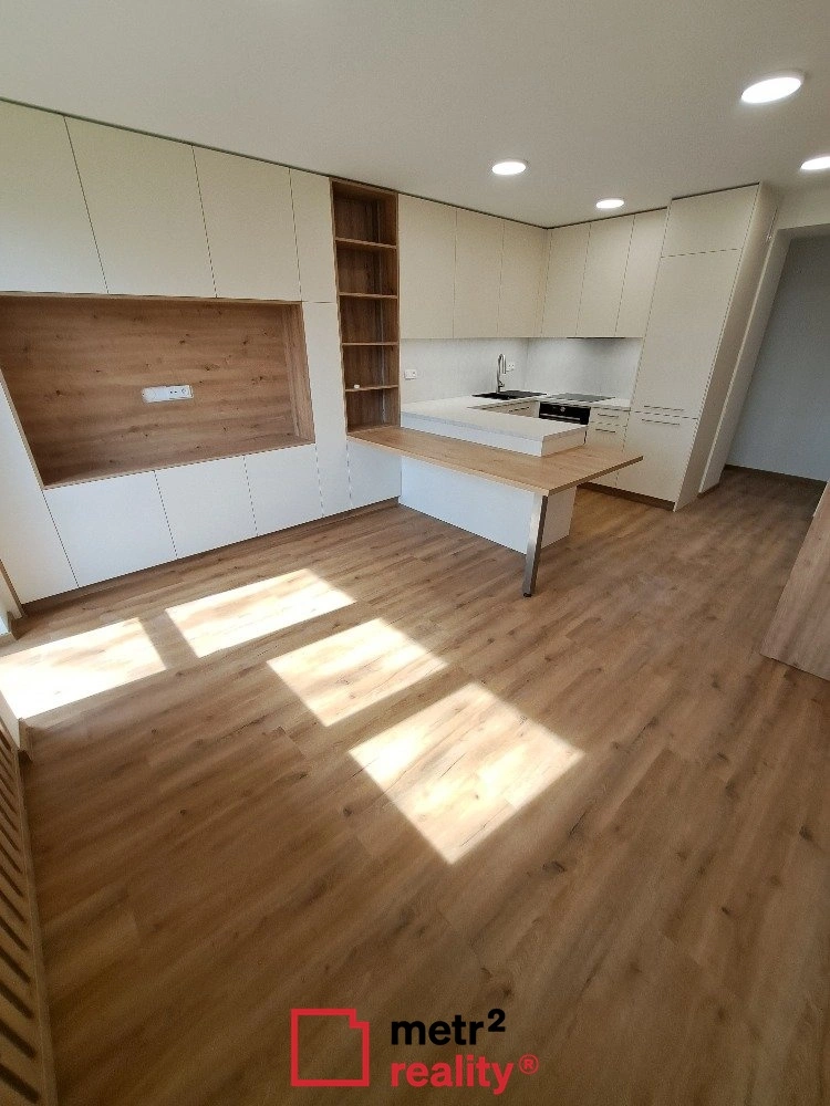 Pronájem kompletně zrekonstruovaného nezařízeného cihlového bytu 3+kk v klidné lokalitě Olomouce na ulici Horova. Byt se nachází ve 2. NP třípodlažního bytového domu bez výtahu, má výměru 57m2, náleží k němu balkon (2,6 m2) a prostorný sklep (5,3 m2). Tvoří ho vstupní chodba s předsíňovou stěnou na míru, ložnice s praktickou šatnou, samostatný pokoj, obývací pokoj s kuchyňským koutem a množstvím úložného prostoru v podobě vestavných skříní a dále koupelna se sprchovým koutem a toaletou. Koupelna je vybavena praktickými skříňkami pod umyvadlem a velkou zrcadlovou skříní nad umyvadlem. Kuchyňský kout je zařízen veškerými spotřebiči (vestavěná myčka, lednice s mrazákem, troubou a indukční varnou deskou) a jeho součástí je i prakticky řešený vestavěný jídelní stůl na míru. V obývacím pokoji je obývací stěna s úložným prostorem. Ve všech pokojích jsou kvalitní vinylové podlahy.