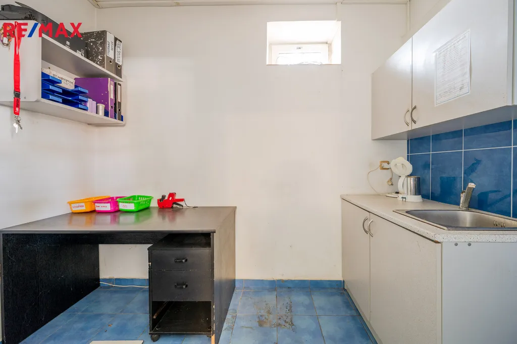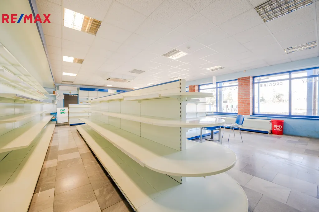 Obchod je plně vybavený regály, kasou a pultem centrální ochrany, alarmem, zázemím pro personál a skladem.