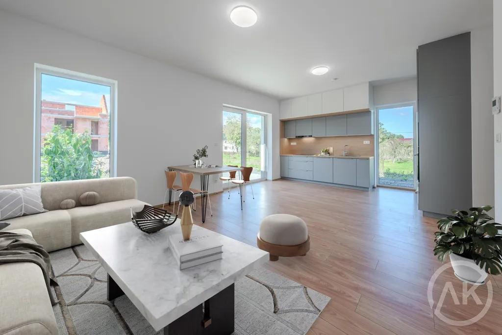 - v bytě je plně vybavená kuchyně, sladěná s ostatními dekory podlah a dveří. Super je taky terasa, pro venkovní posezení nebo grilovačku. Ostatní vybavení už je na vás.