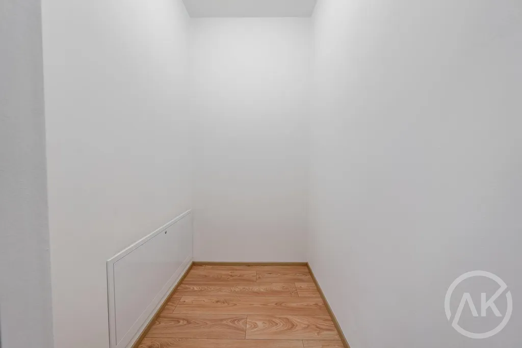 - v koupelně je walk in sprchový kout a okno. To se občas hodí, když to s jídlem přejedete a chystáte se pozvat mámu na návštěvu. Taky se vám tam vejde pračka a sušička,