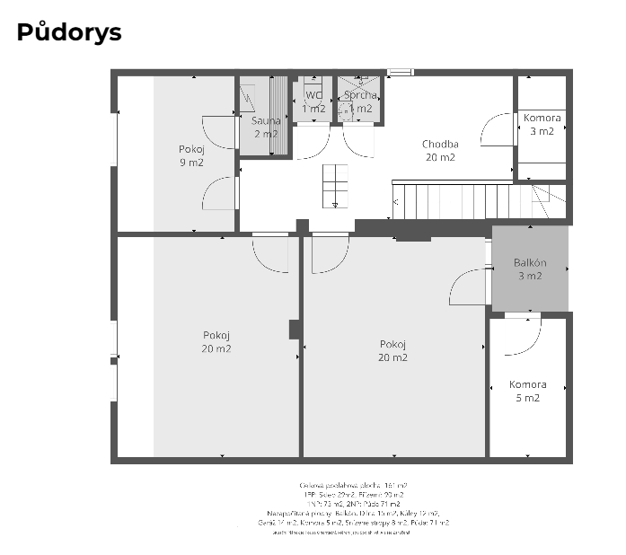 Velkým bonusem je prostorná půda s potenciálem pro další obytný prostor, pracovnu, ateliér nebo hernu.