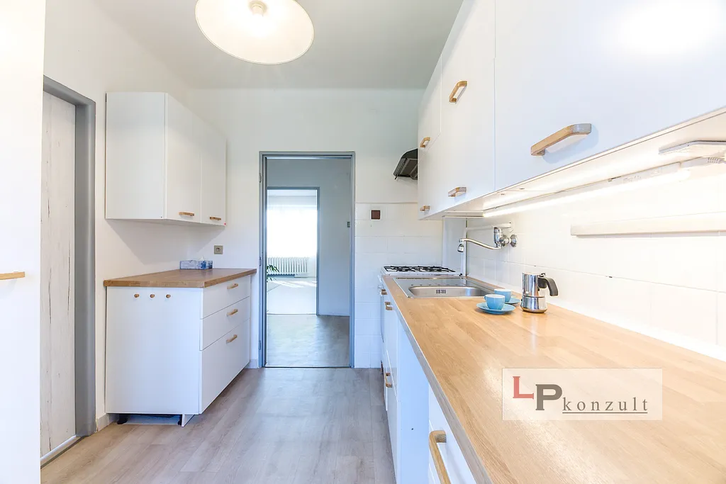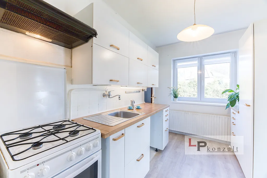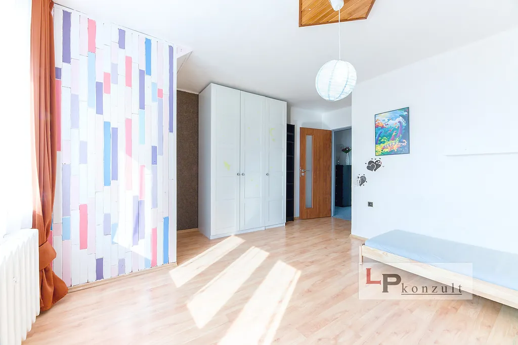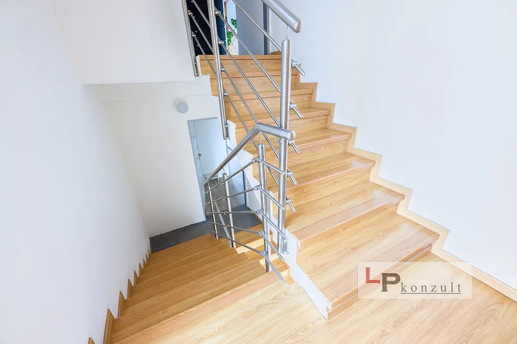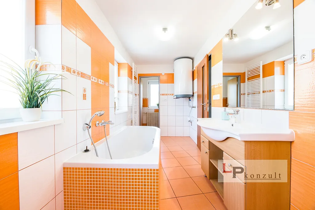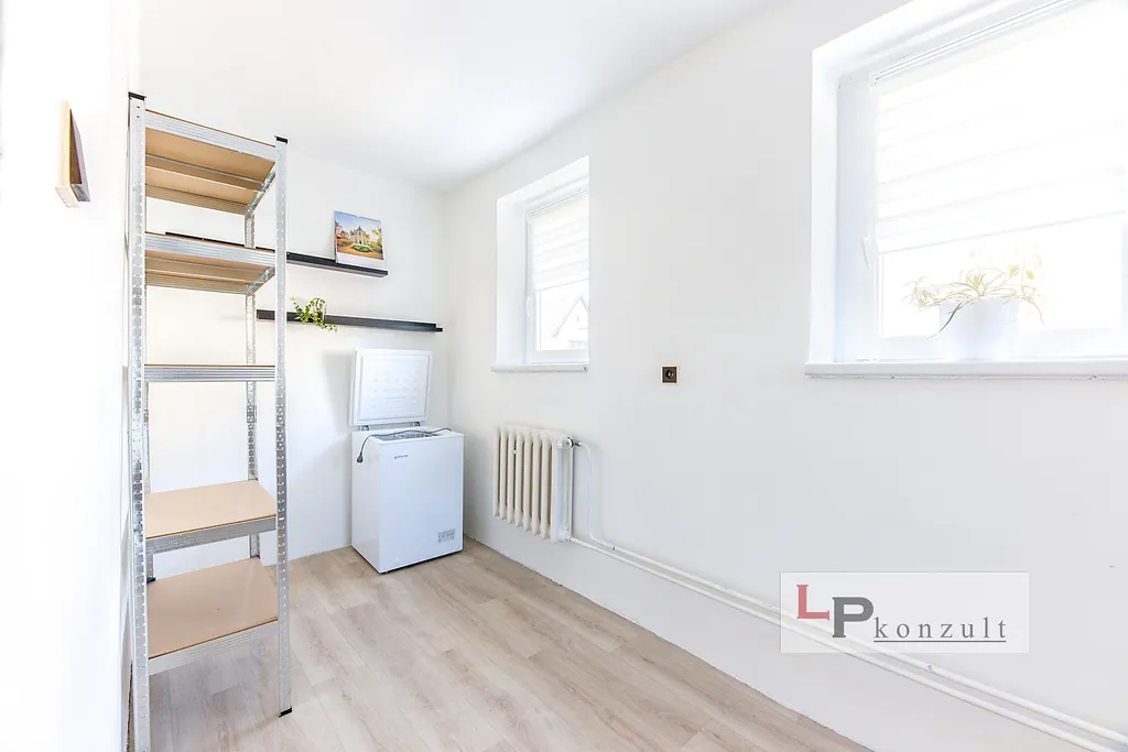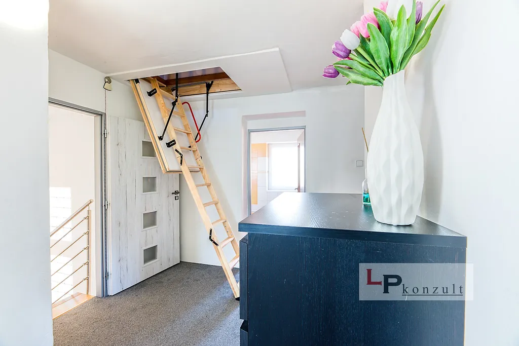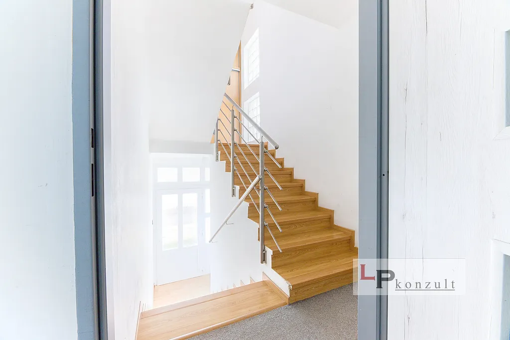 V lukrativní vilové části města Lázně Bohdaneč nabízím dobře udržovanou solitérní zděnou vilu. Dům obsahuje celkem dvě oddělené, bytové jednotky, přístupné vstupními dveřmi ze společného schodiště. Byty lze propojit v 7+1 nebo je užívat zcela odděleně třeba k podnikání/pronájmu. V přízemí se nachází byt 3+1/B 73m² a v patře najdeme atraktivní mezonetový byt 4+KK 70m² s další plochou 44m² obytného podkroví. V praktickém sklepě o celkové ploše 55m² najdete také integrovanou garáž a druhá samostatná garáž je přístupná vraty přímo z ulice (může sloužit jako obchodní prostor). Vytápění domu zajišťuje ÚT s plynovým kotlem a radiátory, ohřev TUV el. bojlerem. To vše naleznete na krásném oploceném pozemku výměry 617m², který je napojený na elektřinu, vodu, plyn, kanalizaci a nechybí ani kopaná studna. K venkovnímu krytému posezení láká zděná stavba s krbem a WC. Potřebné nářadí schováte v šikovném zahradním skladu.
