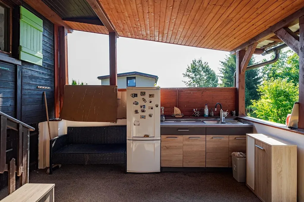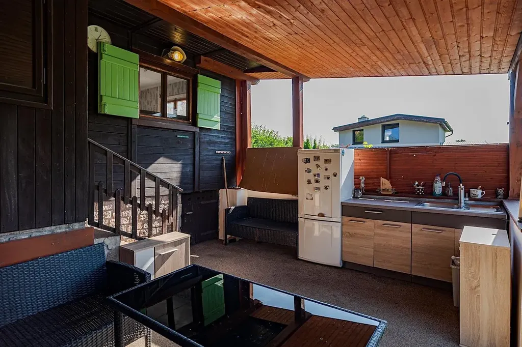 Nabízím k prodeji udržovanou zahradu s rekreační chatou v zahrádkářské oblasti Vrcha ve Vysokém Mýtě. Dřevěná chata na zděné podezdívce má zastavěnou plochu 35 m² a doplňuje ji terasa z roku 2019, která slouží jako venkovní kuchyňský a odpočinkový prostor – s kuchyňskou linkou, lednicí, grilem a posezením. Uvnitř je jedna obytná místnost, pod chatou pak menší sklep o rozměru cca 2,5 × 2 m. Celková plocha pozemku je 601 m², přičemž součástí jsou také dřevník a chemické WC, přičemž ve vzdálenosti asi 50 m se nachází i společné toalety. Chata má sedlovou střechu s plechovou krytinou, je napojena na elektřinu a obecní vodovod, odpad je sveden do trativodu. Na zahradě je prostor pro bazén nebo vířivku, venkovní sprcha, ohniště i místa k relaxaci. Celá zahrádkářská kolonie je oplocená, příjezd autem je možný nedaleko. Nemovitost se nachází v klidné, slunné části s výhledem do okolní přírody, jen pár kroků od lesa. Pozemek i chata jsou v osobním vlastnictví, vše je ve velmi dobrém a udržovaném stavu, připravené k okamžitému užívání.