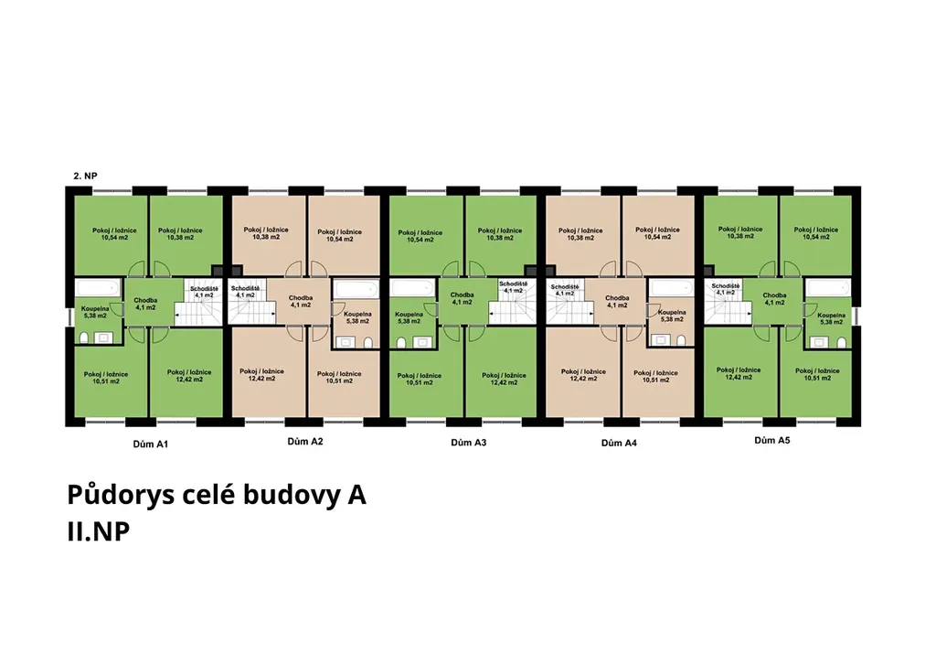 Projekt zahrnuje pouze 5 domů, což zajišťuje klidné a komorní bydlení.