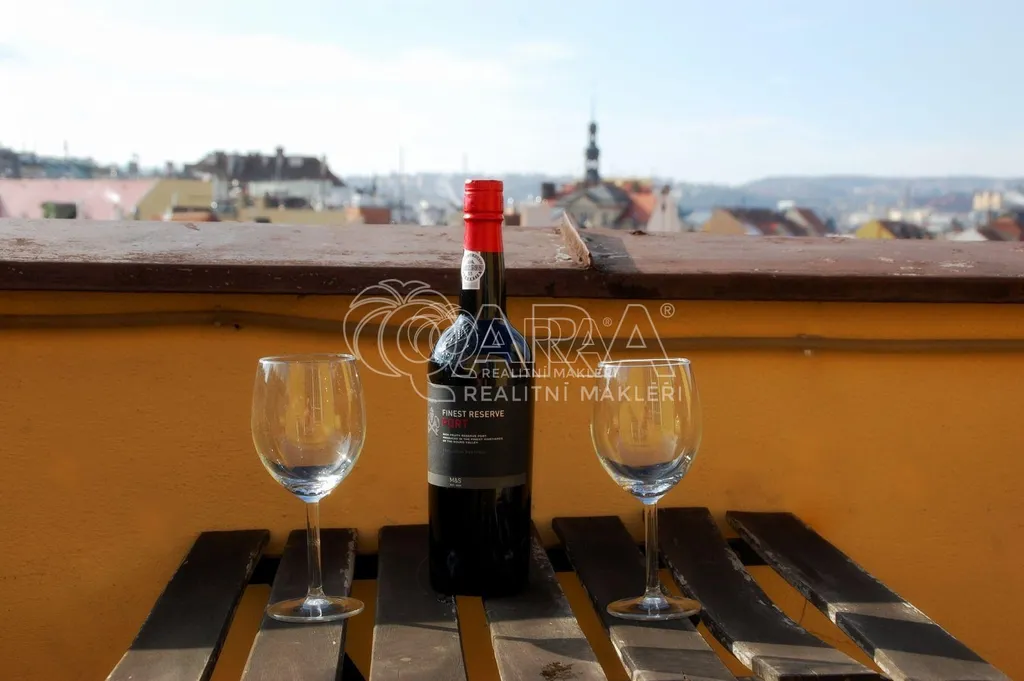 Exkluzivně dlouhodobě, minimálně však na jeden rok pronajmeme slunný byt 1+1, 34 m2 + 26 m2 terasa (s krásným výhledem na Prahu) na Praze 1, pouze 150 m od Staroměstského náměstí. Je situován v 6. patře (7 NP) historického domu s výtahem v Melantrichově ulici č. 466. Po domluvě v bytě možné ponechat nábytek nebo byt pronajmout prázdný.