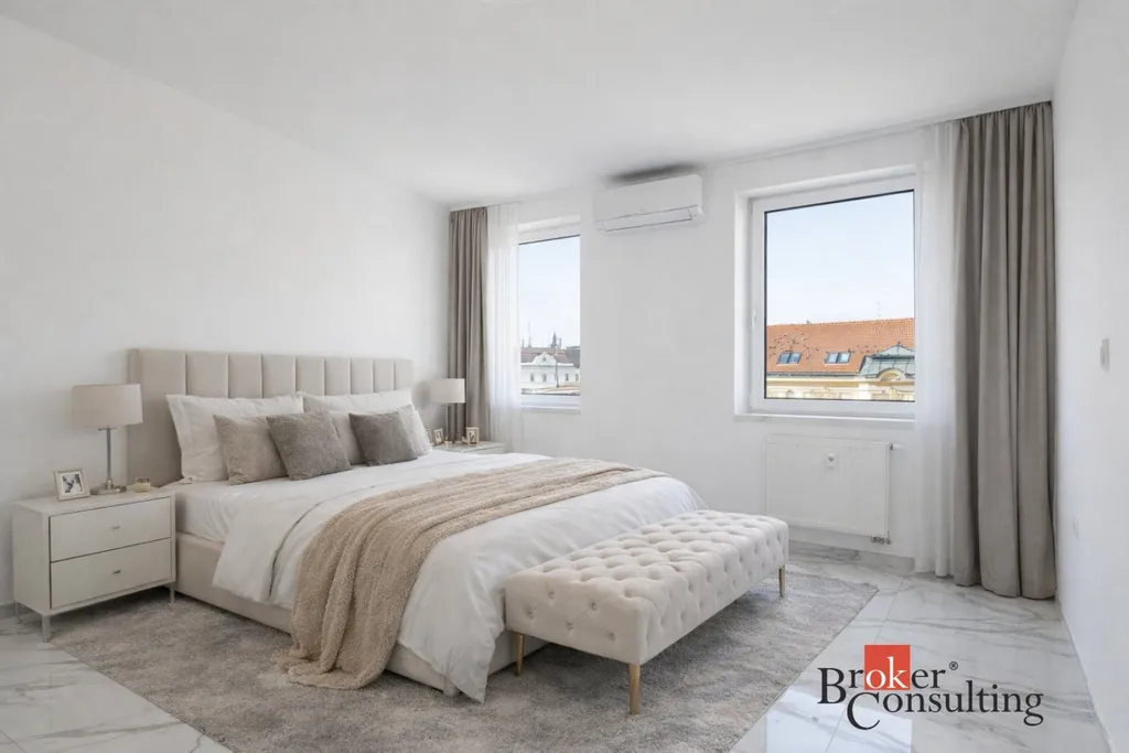 Nabízíme k pronájmu exkluzivní, luxusně zrekonstruovaná a kompletně klimatizovaný byt na ulici Koblížná 3 o dispozici 4+kk s celkovou výměrou 200 m², z toho 95,3 m² činí podlahová plocha a 104,7 m² představují prostorné venkovní terasy. Nemovitost se nachází v samotném srdci Brna na ulici Kobližná a nabízí kombinaci moderního designu, nadstandardních materiálů a mimořádně světlého, vzdušného interiéru. V celém bytě je zároveň připravena instalace venkovních žaluzií.