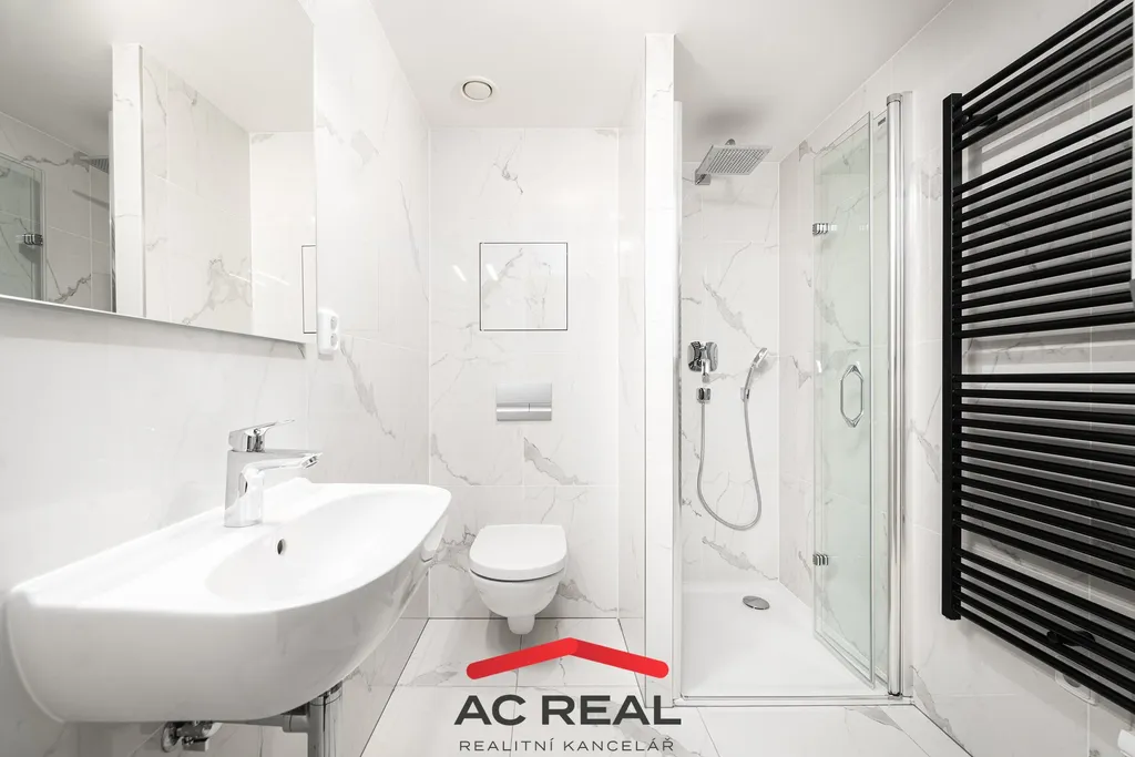 Do apartmánu vstupujete přes praktickou předsíň, která nabízí dostatek úložného prostoru, a která propojuje všechny místnosti. Vstupujete z ní tedy i do koupelny s prémiovými prvky. Kuchyňská linka je umístěna v nice v obývacím pokoji a je oddělená posuvnými dveřmi. Obývací pokoj je opravu velkorysý o velikosti 26m2. Do lodžie je přístup jak z obýváku, tak i z ložnice.