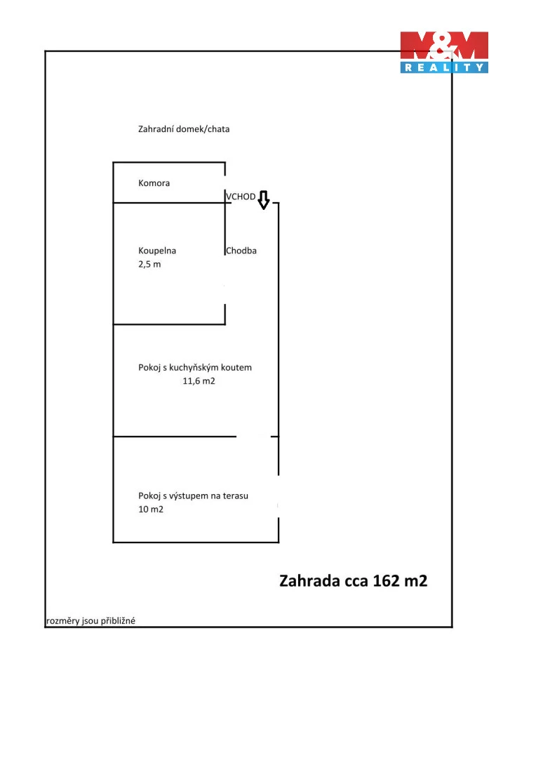 Místo, kam lidé z okolí chodí na procházky do přírody čerpat energii, si můžete nyní pronajmout. Zahradní domek je členěn do 2 místností, má koupelnu a venkovní komoru. Vlastní oplocená zahrádka cca 162 m² je umístěna v rámci většího, oploceného pozemku. Je zde díky tomu klid a soukromí. Na domku jsou umístěny kamery. Topení je možné řešit přímotopy, ale dům je napojen i na fotovoltaiku, což oceníte spíše v letních měsících. Voda z vlastní studny (není poslední rozbor na pitnost, v případě zájmu je třeba si nechat pravidelně rozbor zhotovit, nebo kombinovat s balenou vodou). Zahrádka je osázena vzrostlou zelení a jsou zde připravené záhonky, kde se můžete realizovat. Zvířátka zde jsou vítána. Majitelé preferují klidného zájemce/pár, ideálně nekuřáka, s vizí dlouhodobého nájmu.