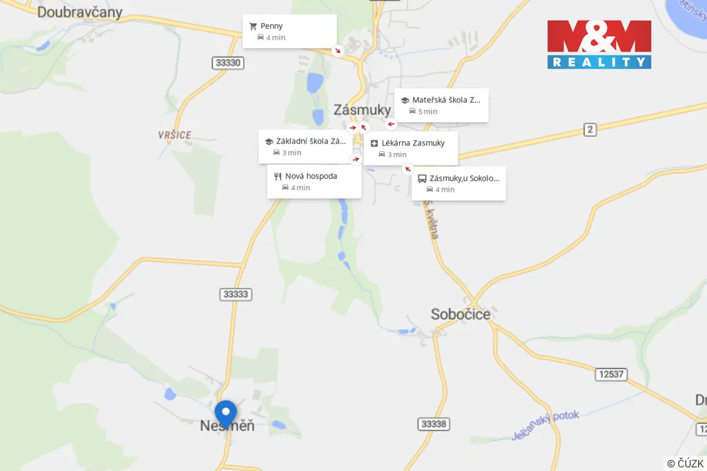 Toužíte po venkovském stavení na samotě, v otevřené krajině, s výhledy do okolních luk a polí? Usedlost v obci Nesměň u Zásmuk vás zaujme především klidem, soukromím a příjemnou atmosférou venkova, ideální pro bydlení i rekreaci mimo město. Přízemní nemovitost se nachází na pozemku o celkové výměře 5 140 m², který tvoří převážně travnaté plochy a zahrada s širokým využitím, mimo jiné i jako ideální zázemí pro chov koní. V blízkosti se nachází obecní rybník, jenž přirozeně doplňuje charakter lokality.