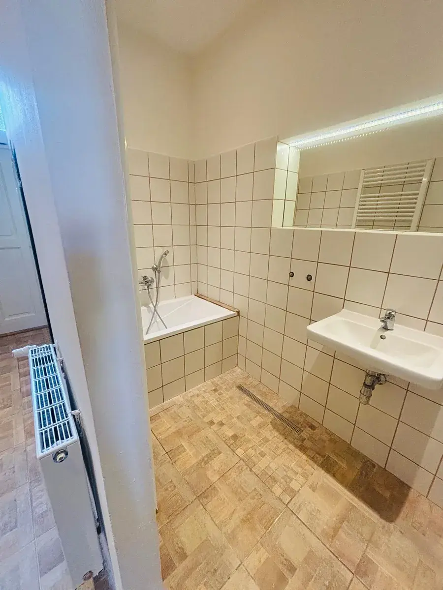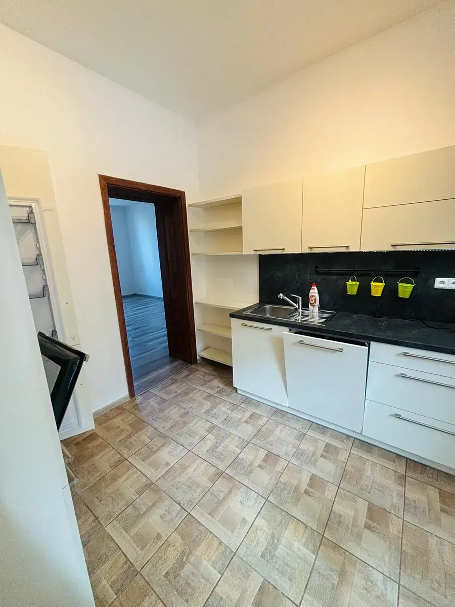 K bytu náleží také sklep. Velká kuchyně s jídelním prostorem, dva neprůchozí pokoje, koupelna a WC.