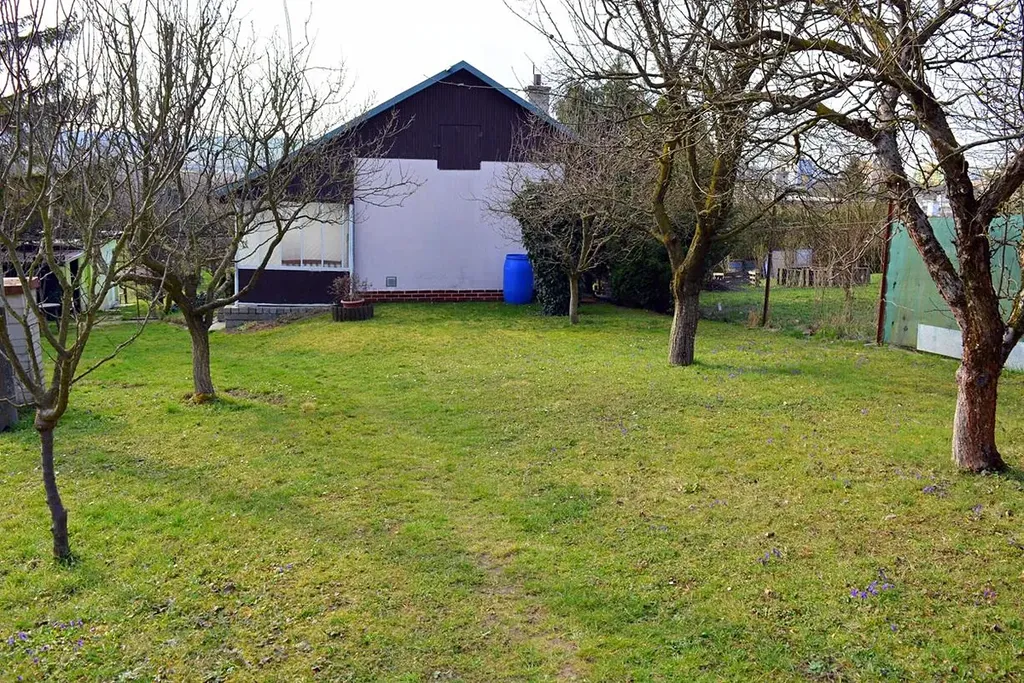 Zahrada je hezky udržovaná, má výměru 1959 m2, je zde skleník, záhonky, vzrostlé a plodící ovocné stromy.