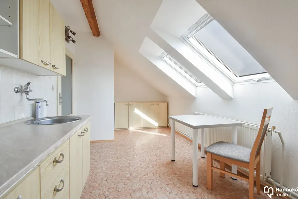 S výhradním zastoupením nabízíme ke koupi cihlový byt o dispozici 1+1 v Olomouci. Jedná se o byt v osobním vlastnictví nacházející se v podkroví čtyřpodlažního cihlového bytového domu na ulici Přerovská. Všechna okna bytu jsou orientovaná severovýchodním směrem do klidu zahrad a zeleně. Byt má podlahovou plochu cca 33,6 m2 a praktické dispoziční uspořádání. Koupelna vybavená vanou a umývadlem, samostatném WC, všechna okna jsou již plastová. Vytápění bytu je řešeno ústředním topením z vlastního kombinovaného plynového kotle zn. Bosch, který slouží i k ohřevu vody. Koupi bytu je možné financovat hypotékou, volné ihned. Vhodné i jako investice k následnému pronájmu. Bližší informace u makléře zakázky.