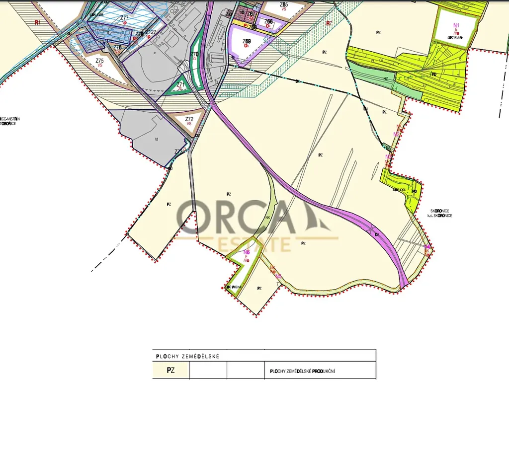 Nabízíme exkluzivně do výlučného vlastnictví pozemky v k.ú. Kyjov, okres Hodonín. Jedná se o ornou půdu, parcely č. 3324/7, 3726/42, 3726/56, 3734/30, 3734/39, 3782/8 zapsané na LV č. 2749 (stavební parcela st. 388/1 není součástí prodeje) o celkové výměře 10751 m2. Dle územního plánu zasahuje horní pozemek výhledově do plochy dopravní infrastruktury, ostatní pozemky jsou součástí stabilizované plochy zemědělské pod zn. PZ. Lze tedy předpokládat výhledově využití i jako plochy smíšené výrobní, s nimiž sousedí. Prohlídky nejsou plánovány, ale rádi Vám na požádání zašleme GPS souřadnice.