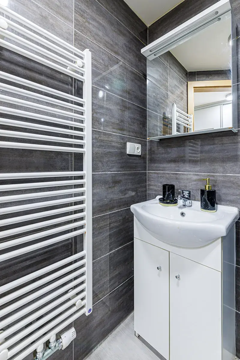 Dispozice a vybavení bytu: Kuchyňský kout s varnou deskou a lednicí. Koupelna se sprchovým koutem a WC. Dále je v pokoji skříň, stůl, křesílko, Smart TV, postel s kvalitní matrací, přikrývkou, polštářem a povlečením.
