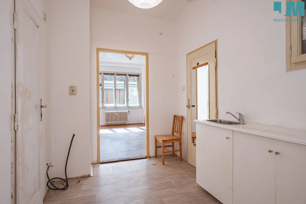 Byt si zachoval řadu původních prvků, které mohou po citlivé renovaci dodat prostoru osobitý charakter. Dominantou hlavního pokoje jsou dřevěné parkety, které vytvářejí příjemnou atmosféru a nabízejí možnost renovace do velmi atraktivní podoby. Kuchyň je vybavena starší kuchyňskou linkou a poskytuje dostatek prostoru pro modernizaci dle vlastních představ. Nemovitost tak nabízí solidní základ pro rekonstrukci a vytvoření bydlení přesně podle vašich představ. Součástí bytu je také koupelna se sprchovým koutem, která nabízí praktické řešení prostoru.