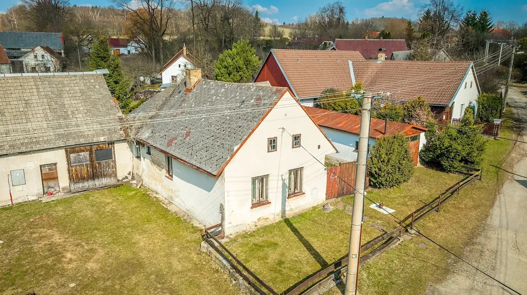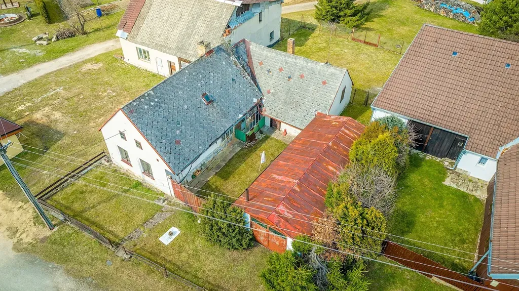 Dům ve tvaru U se nachází uprostřed obce a nabízí uzavřený dvůr, který poskytuje dostatek soukromí a prostoru pro realizaci vysněného bydlení či rekreačního objektu. Za domem se navíc nachází zahrada o výměře cca 200 m2, ideální pro odpočinek, zahradničení nebo posezení s rodinou.