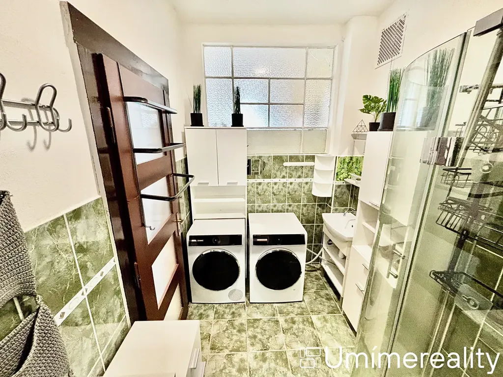 Byt je situován ve 3.NP bytového domu. K bytu náleží parkovací stání na dvoře, dále sklepní kóje (7,6,m2) a půdní kóje (11,5m2).