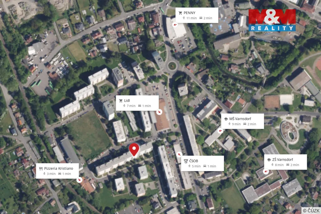 Byt se nachází v centru města v blízkosti veškerého občanského vybavení a zdravotnického střediska. Dům má dva vchody - jeden zcela bezbariérový, novější prostorný výtah a celý dům je zabezpečen kamerovým systémem.