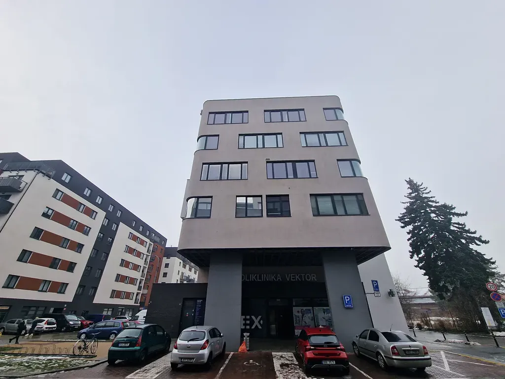 Multifunkční dům ve kterém se nachází zázemí lékařské polikliniky je částečně podsklepen, netypového, bytového domu celkem se sedmi nadzemními podlažími. Objekt je vybaven osobním výtahem.