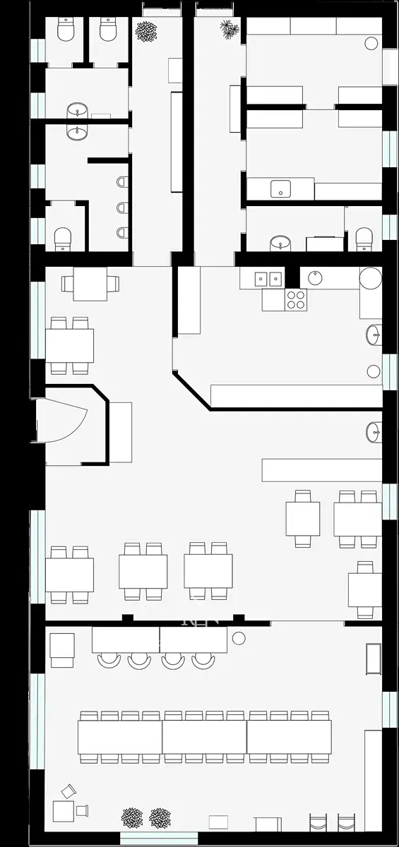 V patře domu se nachází plnohodnotný byt se dvěma pokoji, kuchyní a koupelnou o celkové výměře necelých 50 m2. Ideální pro provozovatele restaurace nebo k pronájmu.