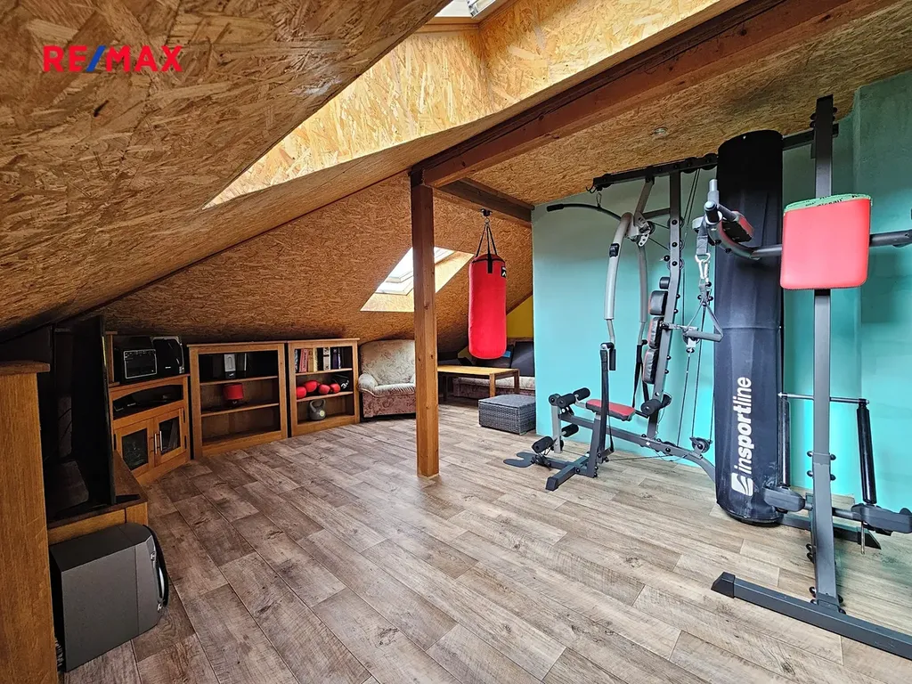 Dům díky své velikosti nabízí možnost v podstatě dvougeneračního bydlení. Přízemí domu je dispozičně 5kk. Jsou zde tři pokoje, ložnice, prostorná předsíň, koupelna s WC a technická místnost s dalším WC a umyvadlem. Obývací pokoj se stylovým krbem je propojen s kuchyní a jídelnou s přímým vstupem na terasu, kde si můžete užívat západ slunce a která je ideálním místem pro rodinná posezení. Kuchyně je doplněna o spíž. V obytném podkroví domu naleznete spoustu dalšího prostoru. Na severní straně podkroví najdete ložnici se vstupem na balkon a koupelnu. Druhé křídlo podkroví Vám nabídne prostory, které se dají výhledově využít dle Vašich představ.