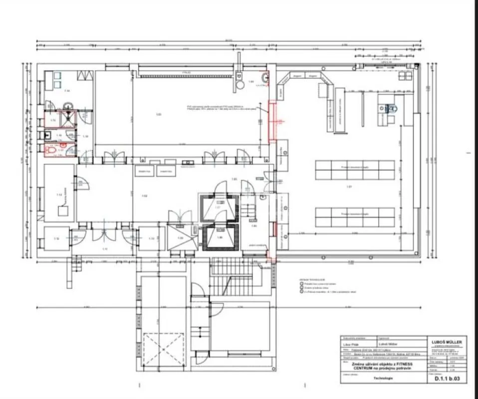 V 1.NP se nachází obchodní prostor 252 m2, kancelář 23 m2, garáž 20 m2.