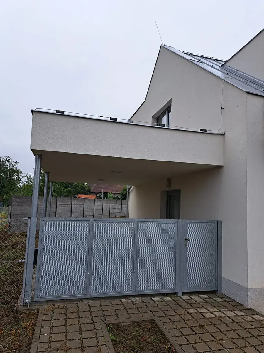 Součástí je přípojka NN, plynovodu, vody, splaškové kanalizace a trubkování pro internet. Venkovní zpevněné pojezdové plochy jsou ze zámkové dlažby. Oplocení v zadní části je z betonových desek v. 2,0 m a v boční části z poplastovaného drátěného oplocení v. 1,60 m. Okapový chodník kolem domu je z kamenných oblázků. Otevíravá brána má elektrický pohon na dálkové ovládání. Dešťová voda je svedena do retenční nádrže a následně do vsaku na vlastním pozemku.