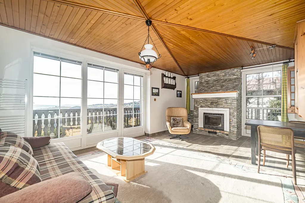 Dům je řešen jako vícegenerační a zároveň nabízí možnost provozování penzionu – k dispozici je celkem několik samostatných bytových jednotek (např. 3+1, 2+1, 4+1 a další apartmány), každá s vlastním zázemím. Nechybí krbová kamna, terasa, balkon s krásnými výhledy ani sauna pro dokonalou relaxaci po dni na horách.