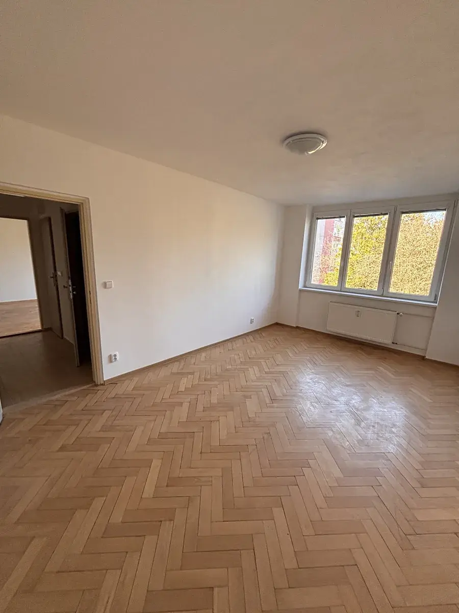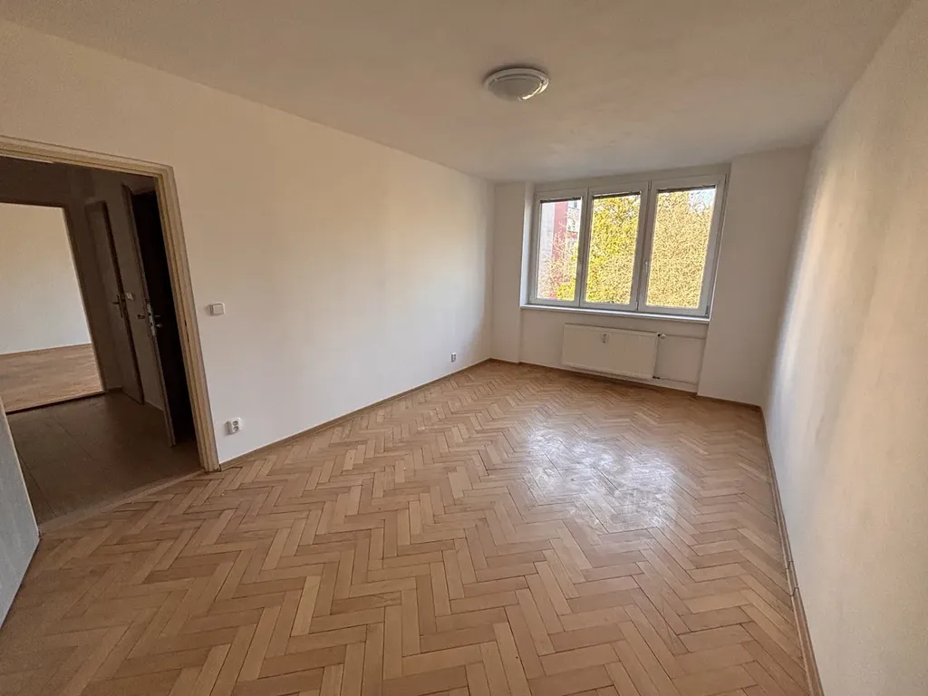 Byt je ve 2 patře a má velmi dobrou dispozici. Po vstupu do předsíně je na jedné straně vstup do ložnice, dále do koupelny, samostatného WC a obývacího pokoje. Kuchyň je za obývacím pokojem. Byt je po kompletní rekonstrukci - nová elektroinstalace., nová koupelna se sprchovým koutem, nová kuchyňská linka s elektrickým sporákem, lednicí s mrazákem a mikrovlnou troubou. V bytě jsou parketové podlahy, v kuchyni, předsíni a koupelně je dlažba. Byt tvoří 2 pokoje, kuchyň s jídelním koutem, samostatné WC, koupelna a předsíňka. K bytu náleží sklepní koje.
