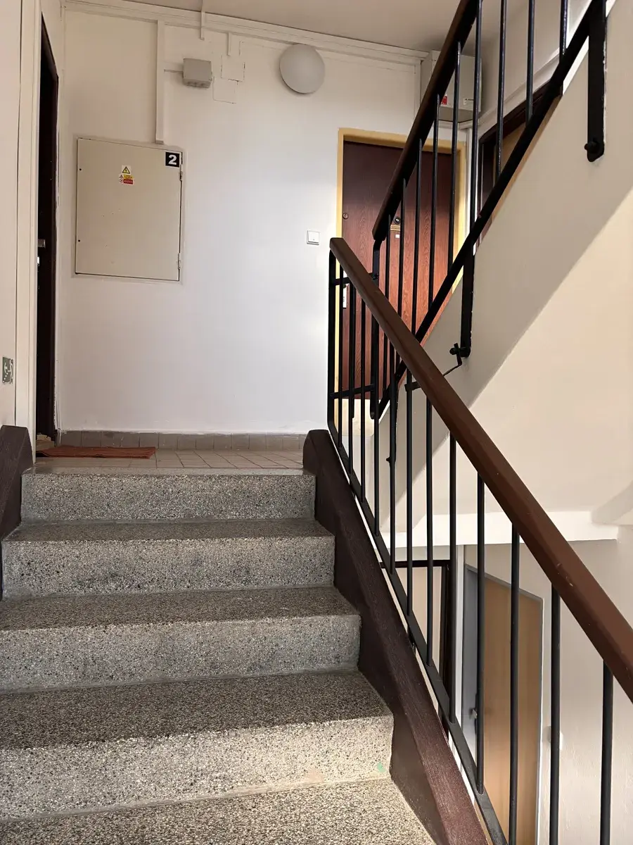 Byt je ve 2 patře, v domě není výtah, dům má 4 patra. Nízké náklady na provoz, v domě bydlí slušná klientela, fungující společenství vlastníků. Díky zeleni, která obklopuje celý dům, je zde naprosté soukromí a klid. Pod okny jsou krásné okrasné keře – rododendrony a azalky, za domem je lesopark a možnost sušení prádla. Krásný udržovaný park s lavičkami jsou i před domem.