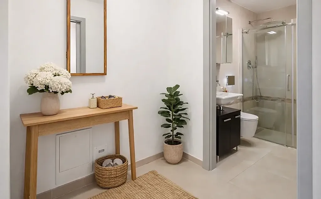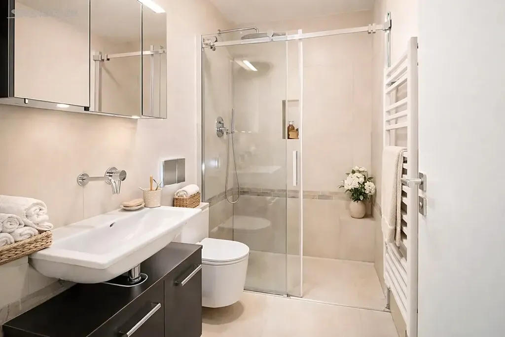 Tento elegantní byt zaujme nejen svou promyšlenou dispozicí, ale především vysokým standardem provedení a důrazem na detail. Dominantou interiéru je designová kuchyňská linka na míru s vestavěnými spotřebiči včetně myčky nádobí, která splňuje nároky i náročnější klientely.
