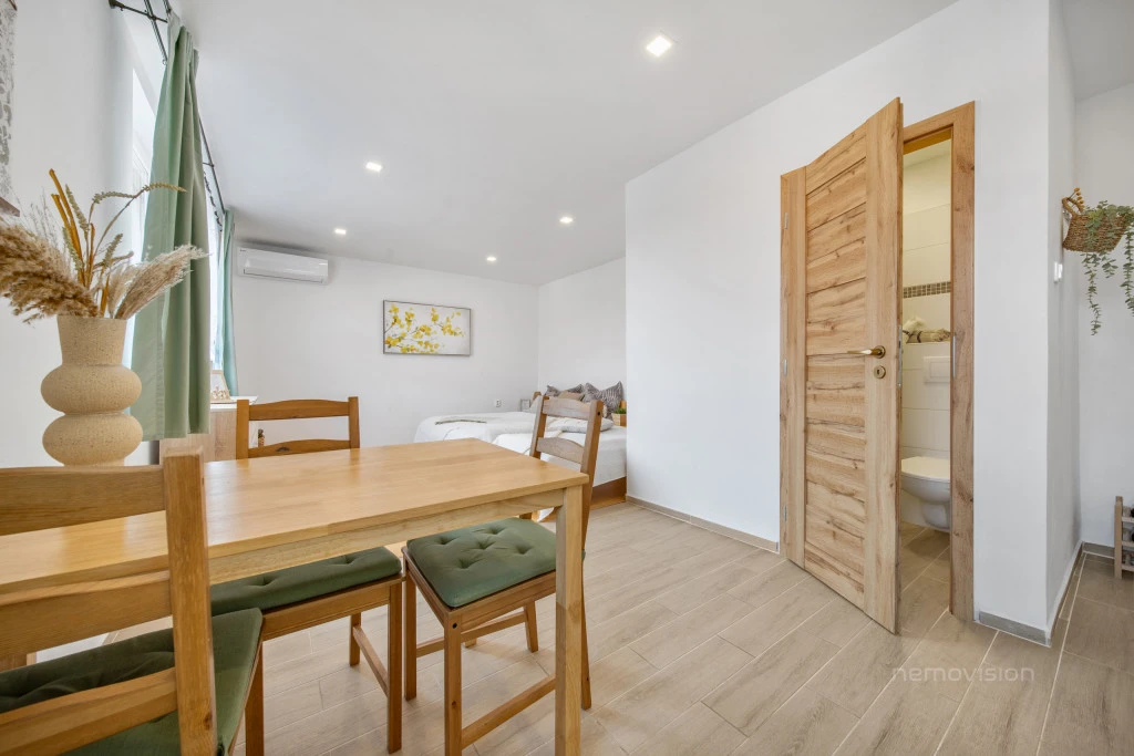 Dům o užitné ploše 111 m², stojící na pozemku 228 m², je prakticky rozdělen na čtyři samostatné apartmány, které umožňují maximální flexibilitu využití.