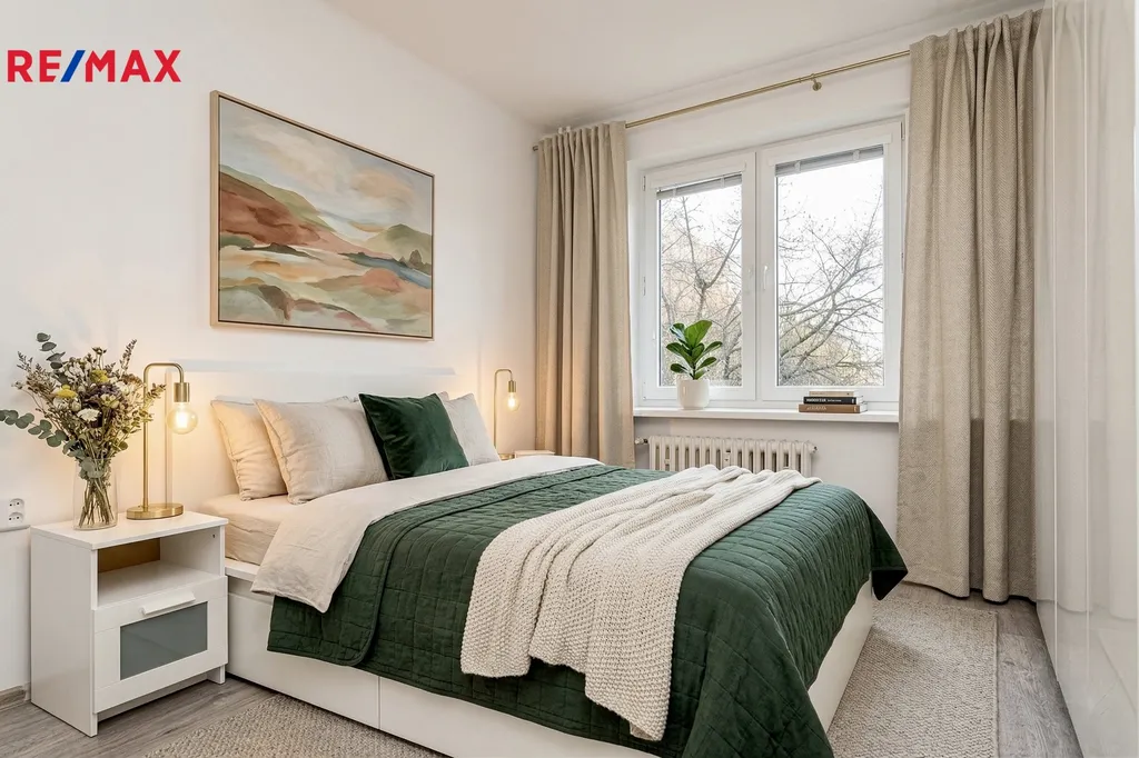 Byt se nachází ve 2. nadzemním podlaží udržovaného domu bez výtahu s výhledem do zeleně. Z chodby je samostatný vstup do všech místností: obývacího pokoje se vstupem na balkon, kuchyně, pokoje, koupelny a WC. Okna jsou orientována na západ, což zaručuje dostatek denního světla. Byt je nabízen bez vybavení.