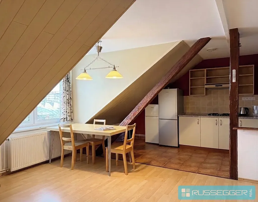 Russegger Real Vám nabízí k pronájmu podkrovní bytovou jednotku o dispozici 3+kk a celkové výměře 94 m².