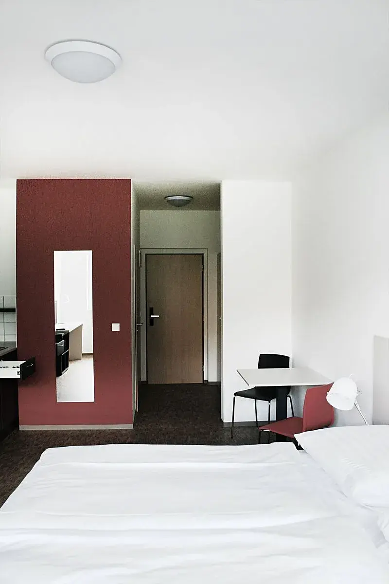 Byt sestává ze vstupní chodby, pokoje s kuchyňským koutem, koupelny se sprchovým koutem a WC.