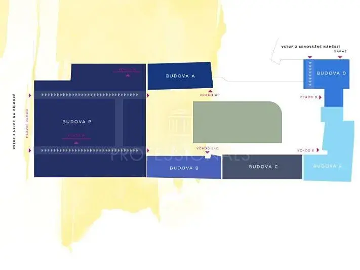 Slovanský dům budova D+E, nabízí moderní kancelářské prostory nejvyšší kvality. Slovbanský Dům v sobě zahrnuje také prostory pro obchody a odpočinek včetně restaurací, kina a luxusních bytů.Ve vnitrobloku je rozsáhlý klidný prostor s parkovou úpravou, vytvářející unikátní prostředí pro odpočinek. Budova z roku 2001, prošla v posledních letech rozsáhlou rekonstrukcí a modernizací. V budově D+E jsou k pronájmu menší jednotky se zázemím, které mohou být využity jako kanceláře, nebo byty. Od července 2026 budou volné kanceláře 2x 203 m2 (dělená dispozice).