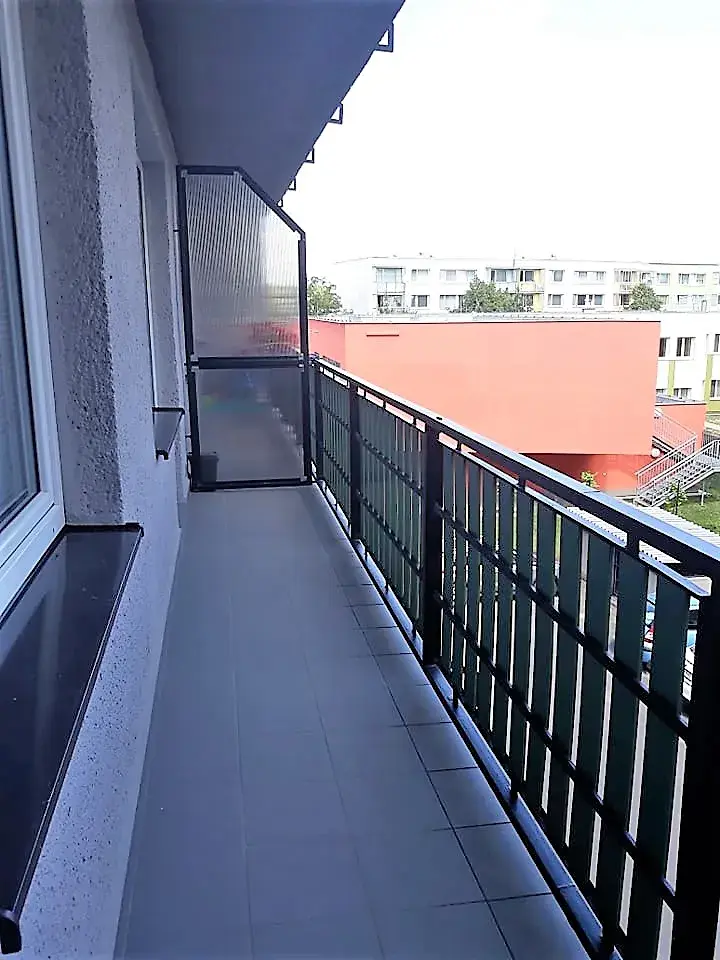 Byt je umístěn v druhém patře bez výtahu. K dispozici je velká lodžie se vstupem z kuchyně i z pokoje. V okolí domu je dostupná kompletní dopravní infrastruktura včetně vlaku, dálnice, silnice a autobusového spojení, což usnadňuje dojíždění do práce nebo na výlety. Hluk zde ale není žádný. K dispozici je i sklep. Nedaleko je nákupní středisko, mateřská škola, lékárna, atd. Pár minut chůze do přírody.
